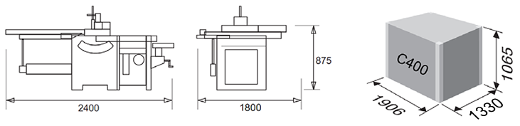 The C400 Combined Machine has been specifically designed be an industrial standard machine, but at a size intended for the factory and small professional workshop. This industrially rated machine features a table saw and sliding table, planer, thicknesser and spindle moulder unit. The cast iron construction, accurate cross cut fence and superb build quality put this machine in a class of its own.