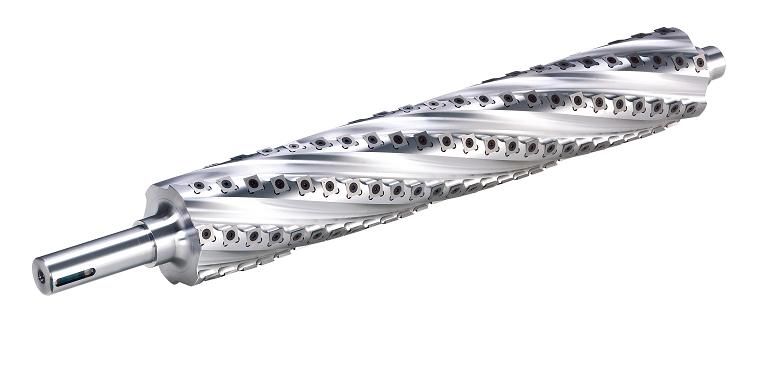Description: This type of spiral cutterhead is designed with a true shear cut. The carbide knives sit at at angle along the helical grooves. It reduces the tear-out of your work, makes smaller chips and less noise than any other type of cutterheads. If one knife edge is dull or nicked, just turn it to another edge in seconds and the cutterhead works pefectly as a new one again. This greatly reduces your down time. Replace the inserts only when four edges are dull. You don't need to replace all the knives as you have to do with the conventional single straight knife. It pays you back in a very short time.